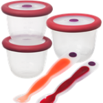 • per contenere tutto ciò che occorre per il bebè che ha appena iniziato lo svezzamento, ecco una serie di ciotole con le posate termoregolanti in dotazione, di Bebè Confort