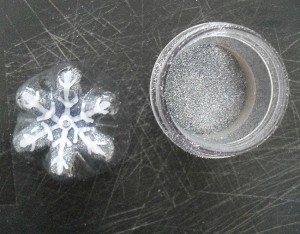 • con il glitter colorato disegnate un fiocco di neve. Sarete aiutati dalla struttura del fondo.