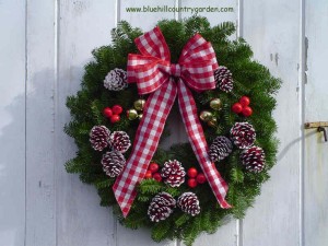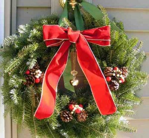 Se volete mettere la vostra ghirlanda fuori dalla porta, potete optare per quelle classiche realizzate con agrifoglio (come quella nella foto d’apertura), abete, tuia, bacche, pigne e nastri.