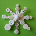 Ecco l’altro  materiale: bottoni di diversa forma (qui esclusivamente bianchi), perline,  paillettes e altre decorazioni bianche. Colla vinilica o a caldo.