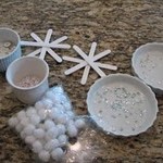Dopo che i bastoncini si saranno asciugati, invitate i vostri bimbi a decorare il fiocco secondo il loro gusto, aiutandoli un po’. Come al solito, coi piccoli è meglio utilizzare la colla vinilica, metterla in una ciotola e prenderla con un cotton fioc o con uno stuzzicadenti. Il lavoro sarà più preciso e senza sbavature.