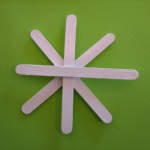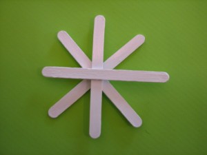 Avrete bisogno di quattro bastoncini per ogni fiocco, incollateli uno sopra l’altro.