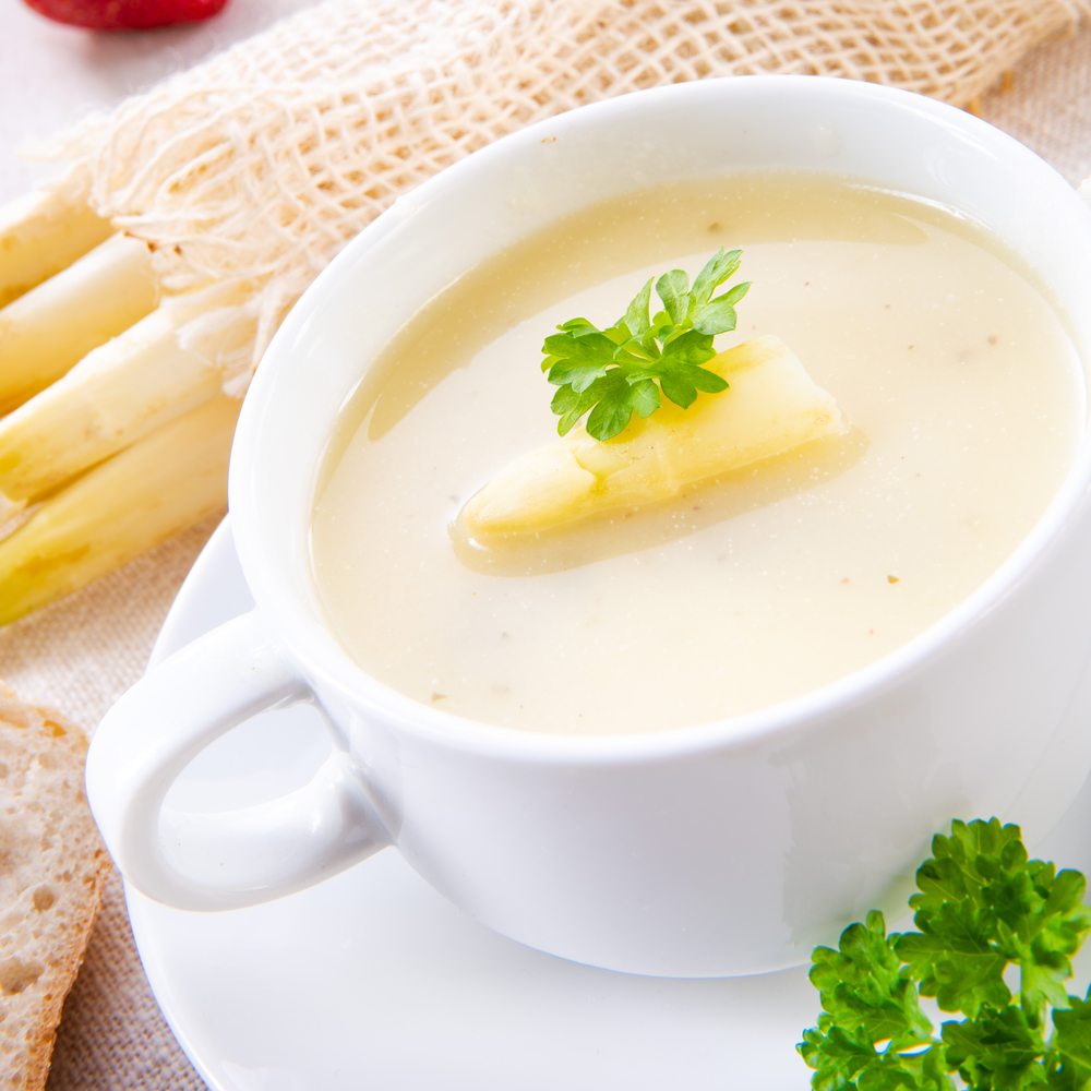 Per la base utilizzate il brodo classico al quale andrete ad aggiungere due o 3 punte di asparago e una mezza patata media già pulita (circa 70g), se questa non era già presente nel brodo. L’ideale sarebbe cuocere gli asparagi e la patata al vapore e aggiungerle poi al brodo caldo e alla ricotta (circa 30g). Infine, prima di omogeneizzare il tutto aggiungere un filo d’olio EVO. La patata e la ricotta smorzeranno il gusto deciso degli asparagi e questa vellutata diventerà un piacevole piatto anche per mamma e papà, con l’aggiunta di un pizzico di sale.