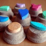 E infine Homemademamma, che ha comprato tappi di sughero molto grossi, in vendita per le damigiane e vi ha attaccato pezzi di quei tappetini – puzzle di gomma che tutti i bambini hanno in casa e che magari ora non si utilizzano più