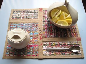 Ritagliando delle striscioline di carta, ripiegandole e intrecciandole si possono ottenere delle tovagliette per la prima colazione come questa