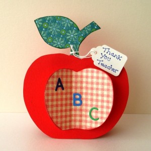 Un biglietto che è quasi un lavoretto. Una mela rossa e un’etichetta con i ringraziamenti.