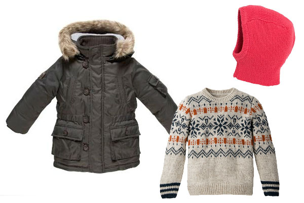 Parka verdone Chicco, maglione con fiocchi di neve Iana e passamontagna Petit bateaux