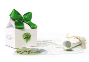 Amka, onlus che opera in Congo, offre la possibilità di acquistare bomboniere già confezionate, realizzate con i prodotti del commercio equo e solidale. Troverete sacchetti di juta, scatolette in palma sbiancata, sacchettini.