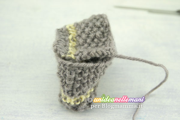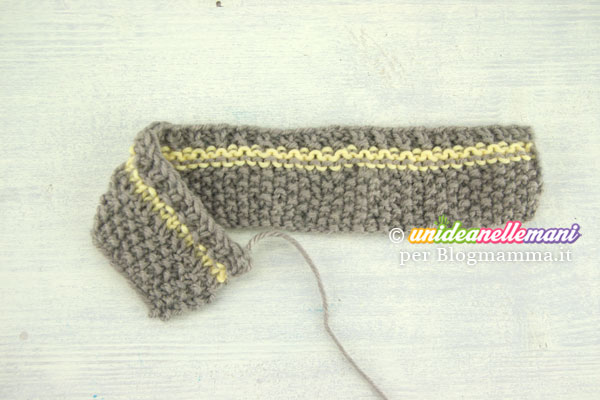 Raggiunta l’altezza che mi interessava, ho chiuso le maglie lasciandomi una bella gugliata di filo per le cuciture.