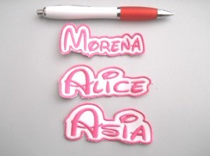 In merceria potete anche trovare la versione in tessuto, le cosidette “toppe” con il nome del bambino ricamato, particolarmente indicate per lenzuola, asciugamani e sacchetta. Il procedimento per l’applicazione è identico a quello delle etichette stampate.