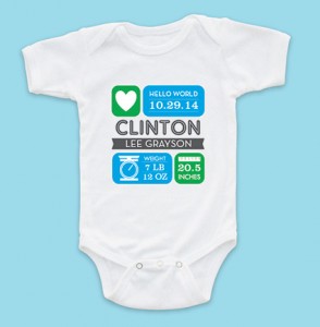 Esiste la possibilità di farsi fare un body per bebè in cui ci siano le informazioni riguardanti la nascita. Fotografate il vostro bimbo mentre lo indossa.