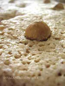 • Nel frattempo sbattete bene e a lungo le uova con lo zucchero. Devono diventare una crema chiara e spumosa.