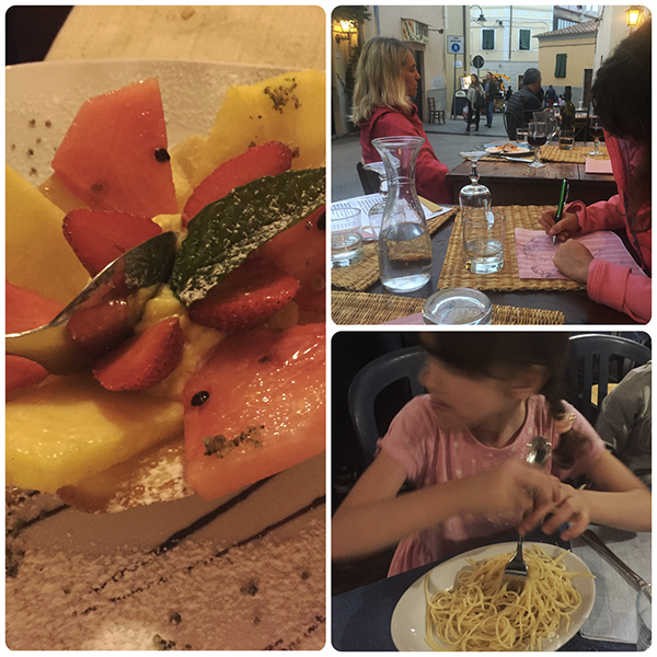 Durante la settimana abbiamo provato alcuni ristoranti di Capolavori, che con  la sua piazzetta e le vie pedonali pieni di baretti e negozi, verso sera sera dà il suo meglio, perché i piccoli scorrazzano senza pericolo e i genitori possono tirare il fiato. Abbiamo cenato divinamente alla Pecora Nera, specializzato in carne che arriva direttamente da un allevamento toscano e che ai piccoli affamati ha preparato un tagliere di pizzette a forma di stelle. Abbiamo assaggiato la tipica cucina elbana in chiave raffinata all‘Osteria del Gallo Nero e  apprezzato la trattoria lo Sgarbo, tanto che l’ultima sera abbiamo voluto fare il bis,