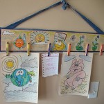 Ora si tratterà di abbellire il foglio di compensato e lo farete utilizzando le opere dei vostri bambini. Potreste far colorare loro un po’ dei tanti disegni che trovate su filastrocche.it, ritagliarli e incollarli.