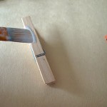 Una volta terminato il lavoro con le mollette, potete cominciare a posizionarle sul compensato. Verificato qual sia la posizione migliore, incollatele saldamente, avendo, ovviamente, cura di tenere la parte dove si pinzeranno i fogli in basso.