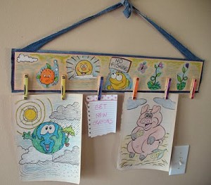 Ecco pronto il porta disegni. Utile nella cameretta di vostri bambini, ma anche in cucina, magari con disegni a tema, per attaccare bigliettini promemoria.