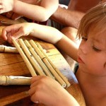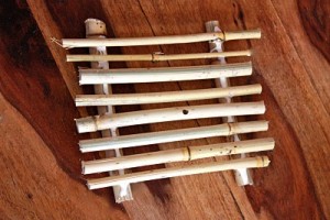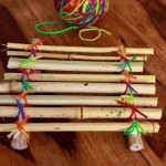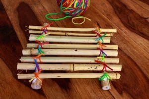 Di cosa si ha bisogno?  Di un po’ di pezzi di bambù, di quelli che si trovano lungo l’arena, di colla vinilica, corda colorata, un pezzo di tela o cartone o tela cerata.