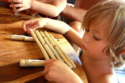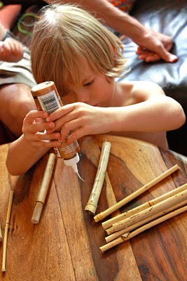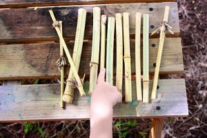 Di ritorno dalla vostra passeggiata durante la quale avrete raccolto tanti pezzi di bambù, radunateli tutti e verificate che siano più o meno della stessa misura.
