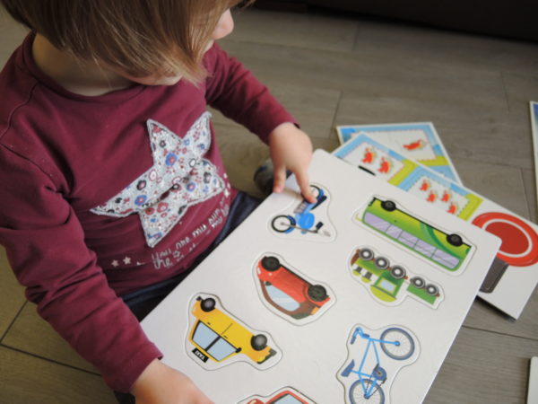 • le figurine di cartone che accompagnano il gioco sono molto divertenti e aiutano il bimbo a scoprire i nomi dei mezzi di trasporto