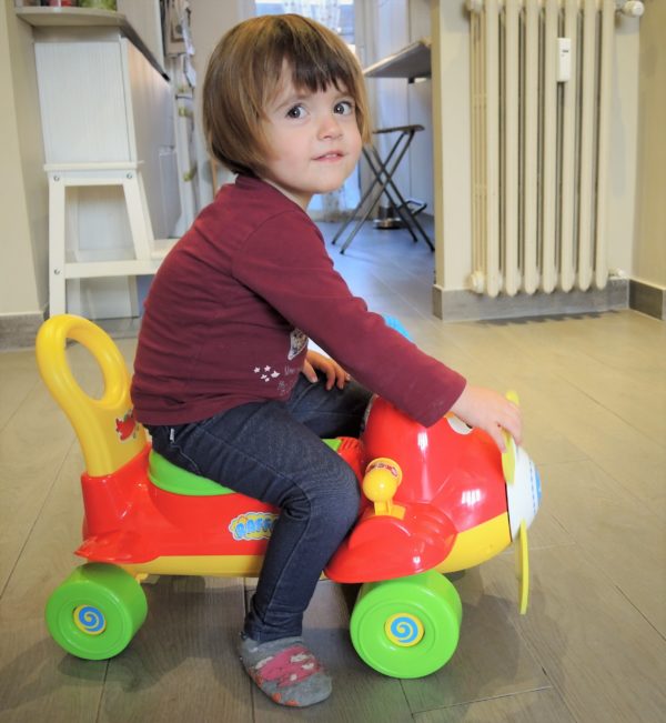 Raffaello aeroplanino 4 in 1 è un nuovo divertente cavalcabile, adatto sia per i primi passi, che più avanti. È elettronico, parla e si illumina ed è 4 in 1 proprio perchè ha anche un ricco kit di giochi che può essere riposto nel vano portagiochi sotto il sellino dell’aeroplanino.