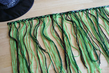 • Oppure potreste attaccare alla base dei fili di lana verde, viola e nera, simulando così i capelli.