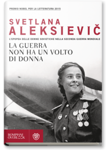 La guerra non ha un volto di donna La guerra non ha un volto di donna, Svetlana Aleksievic, Bompiani 22 giugno 1941: l’uragano di ferro e fuoco che Hitler ha scatenato verso Oriente comporta per l’URSS la perdita di milioni di uomini e di vasti territori e il nemico arriva presto alle porte di Mosca. Centinaia di migliaia di donne e ragazze, anche molto giovani, vanno a integrare i vuoti di effettivi e alla fine saranno un milione: infermiere, radiotelegrafiste, cuciniere e lavandaie, ma anche soldati di fanteria, addette alla contraerea e carriste, genieri sminatori, aviatrici, tiratrici scelte.  La guerra “femminile” è nella percezione delle donne anche più carica di sofferenza di quella “maschile”.
