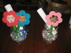 Oppure potreste decidere di realizzarli con al centro la foto del bimbo. Sistemati in un vasetto dipinto e decorato sempre dal piccolo, diventano un bellissimo regalo per la mamma.