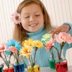 Un esperimento da fare con i bimbi, colorare i fiori. Prendete dei fiori recisi bianchi, del colorante per alimenti e dei vasetti. Mettete i fiori nell’acqua, in diversi vasetti,  aggiungete il colorante alimentare. I fiori assorbiranno l’acqua colorata e dopo un paio di giorni mostreranno i loro petali bianchi magicamente colorati.