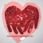 Anche questo può essere un biglietto. Il cuore è realizzato anche dalle impronte delle due mani tutte ricoperte di porporina.