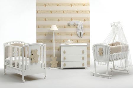 Per le camerette sopra descritte, Babi, Pucci, Soft Sabbia e Stellina, completa il tutto un coordinato tessile composto non solo da lenzuola,  asciugamani, lampade, cesta, sacca contenitore e poltrona ma anche con lampada a stelo, appendiabito a stelo, spechio e fasciatoio tessile (fasciatoio con scheletro in massello di legno rivestito dal tessile che permette di spostarlo).