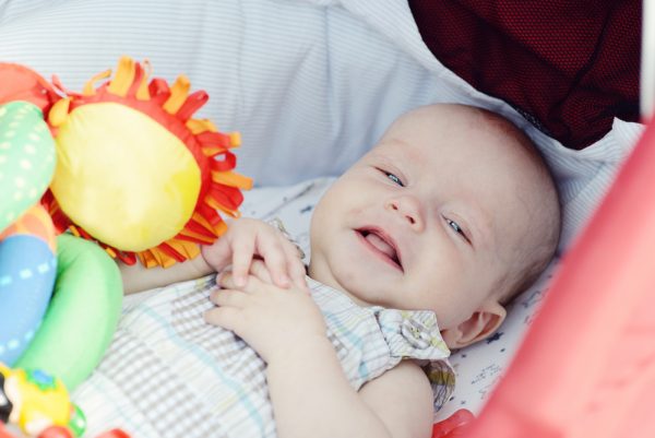 neonato in carrozzina in estate