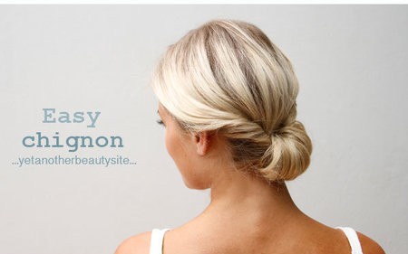 Uno chignon basso molto semplice da realizzare, adatto anche a capelli non lunghissimi.Dividete i capelli in due ciocche, arrotolatele su se stesse e fermatele in una coda bassa. Girate la coda facendola passare dall’interno. Arrotolate i capelli e fermateli sulla base della coda. Tutorial: chignon basso
