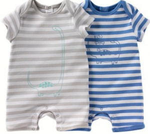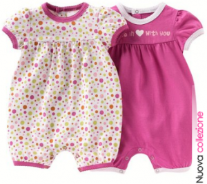 Per le femminucce due simpaticissimi pagliaccietti nelle tonalità del rosa e viola… di tendenza anche durante la nanna 😉