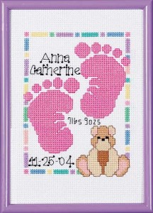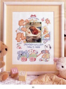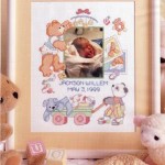 Ne abbiamo visti diversi modelli: il vero e proprio fiocco, magari ricamato, la coccarda, la cicogna, la carrozzina. Potete sbizzarrirvi. Se siete appassionate di punto croce e avete ancora tanto tempo davanti prima dell’arrivo del bimbo, potete pensare di ricamare un quadretto che annunci la nascita, da appendere fuori dalla porta dell’ospedale (o di casa) durante i primi giorni di vita del piccolo e successivamente da lasciare in cameretta: un quadretto colorato che ricordi il momento in cui è venutov al mondo. Sono tantissimi gli schemi per dilettarsi nella realizzazione di uno di questi quadretti. I più belli sono in vendita in alcuni siti anglosassoni, io ve ne mostro alcuni.