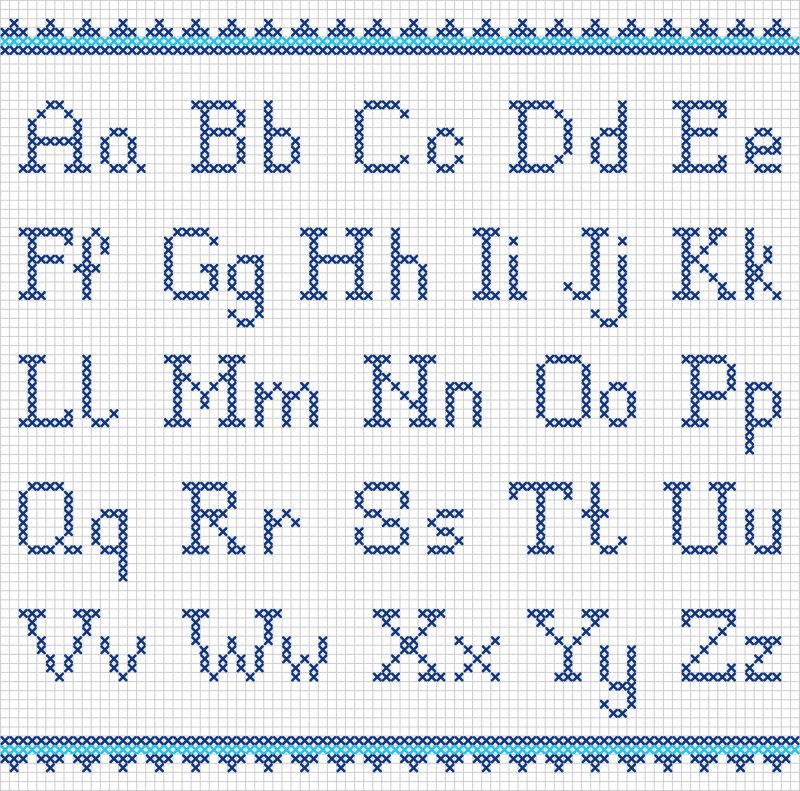 Se non sai come ricamare il nome, fatti aiutare dagli schemi di alfabeto a punto croce. Eccone uno come esempio.