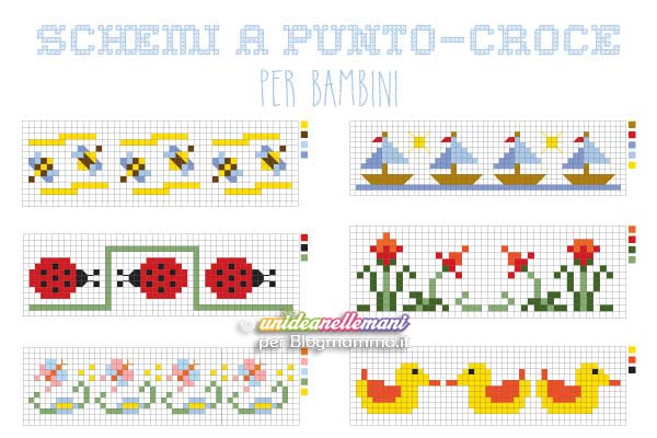 schemi per bordure a punto croce per sacchette asilo e grembiuli