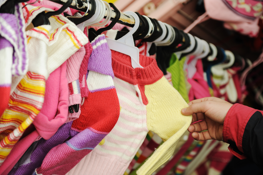 Close-up of a female customer looking for children clothes in a fashion store
