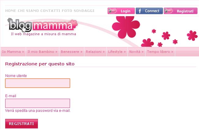Form di Registrazione su Blogmamma.it