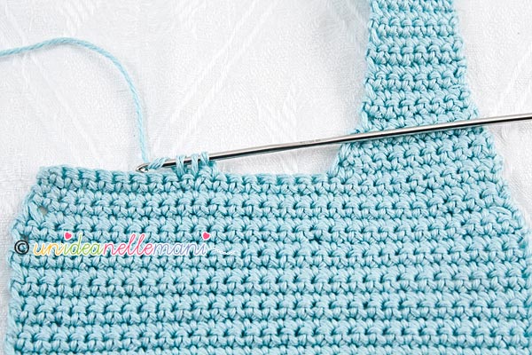 • 12 giro→ 32 giro Lavorare a maglia bassa senza aumenti