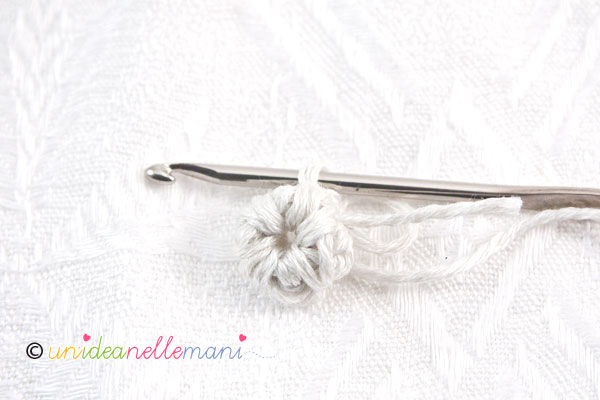 • 5 giro→ 11 giro proseguire così a lavorare con gli aumenti a inizio riga.