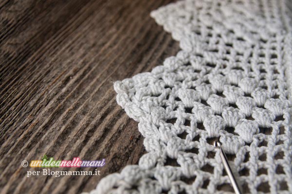 Questo è possibile perché con l’uncinetto a filet si lavora una sorta di rete con spazi pieni e spazi vuoti utilizzando semplicemente maglie alte e catenelle.