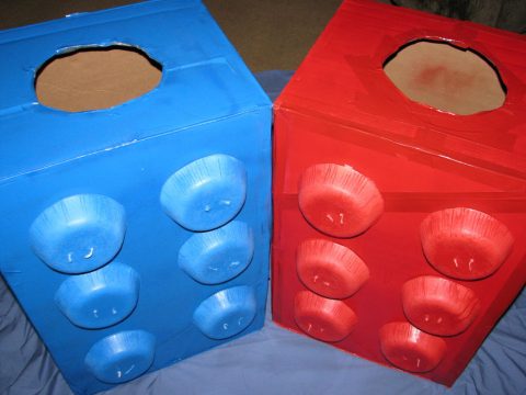• Costume robot realizzato con due scatole, una grande per il corpo e una più piccola per la testa, e un po’ di tubo flessibile