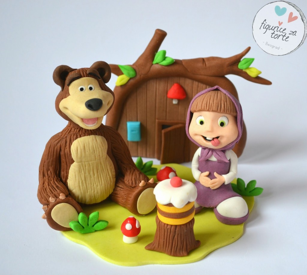 Decorazioni per torta di Masha e Orso: topper con personaggi in pasta di zucchero