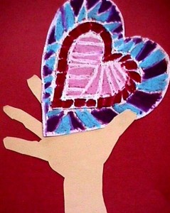 Un cuore colorato offerto dalla mano del bambino, un biglietto originale.