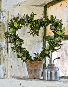 Sempre in tema casa, ecco una pianta rampicante (basterebbe un’edera o un gelsomino) sostenuta da un filo di ferro modellato a cuore.